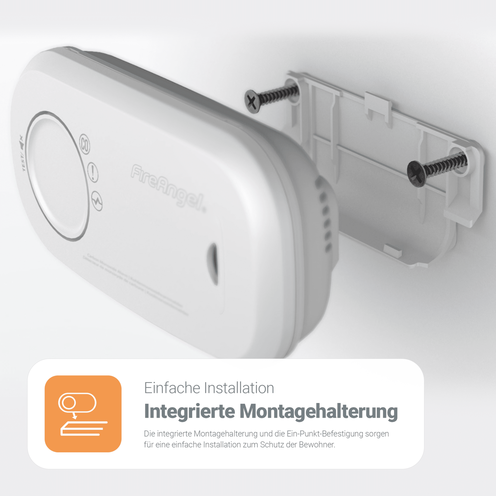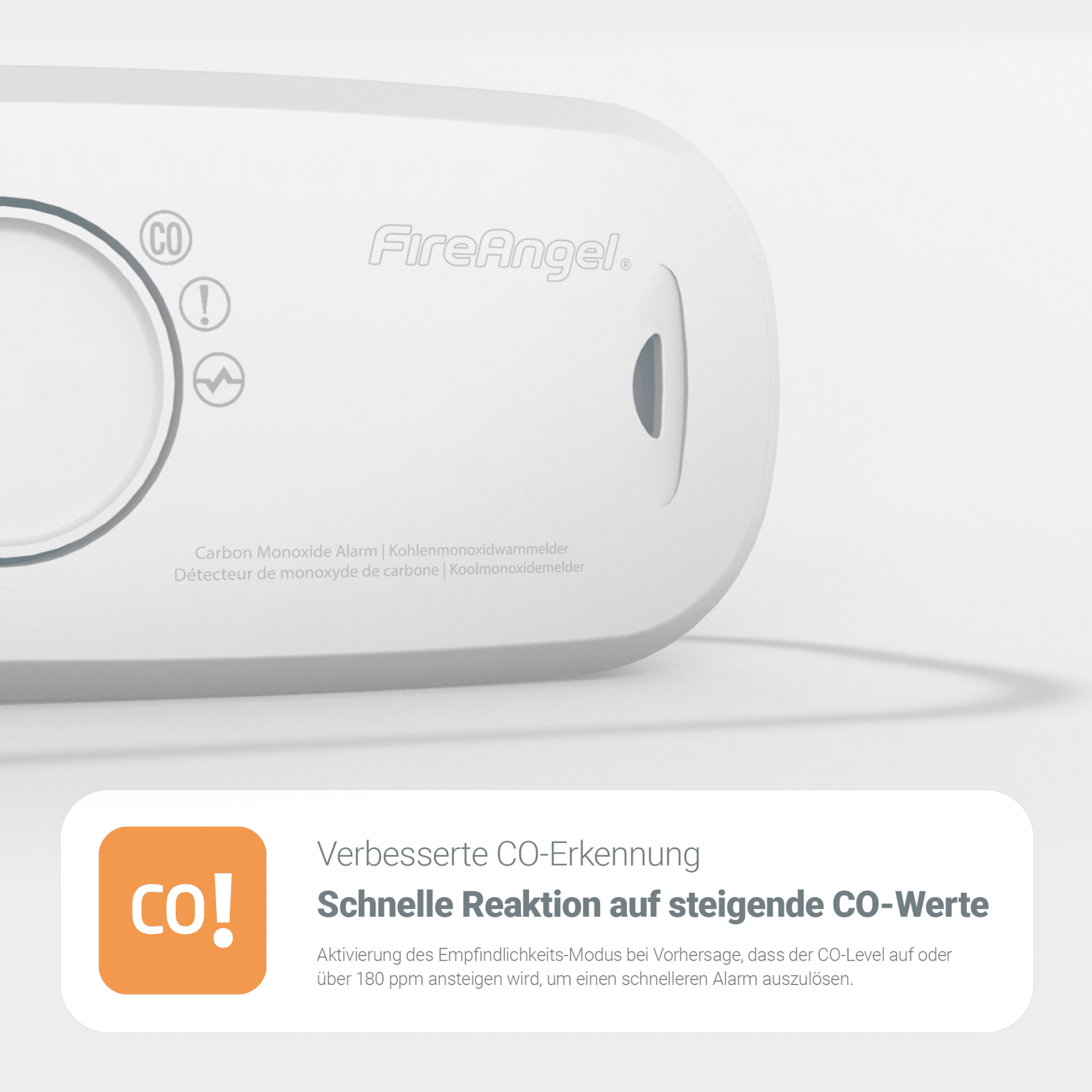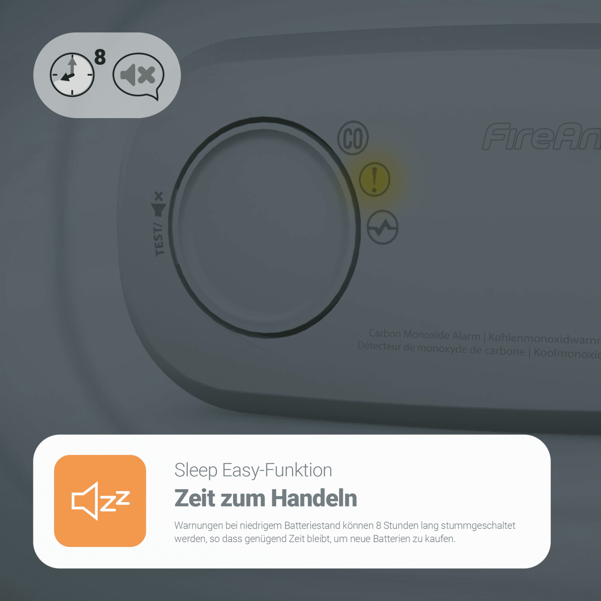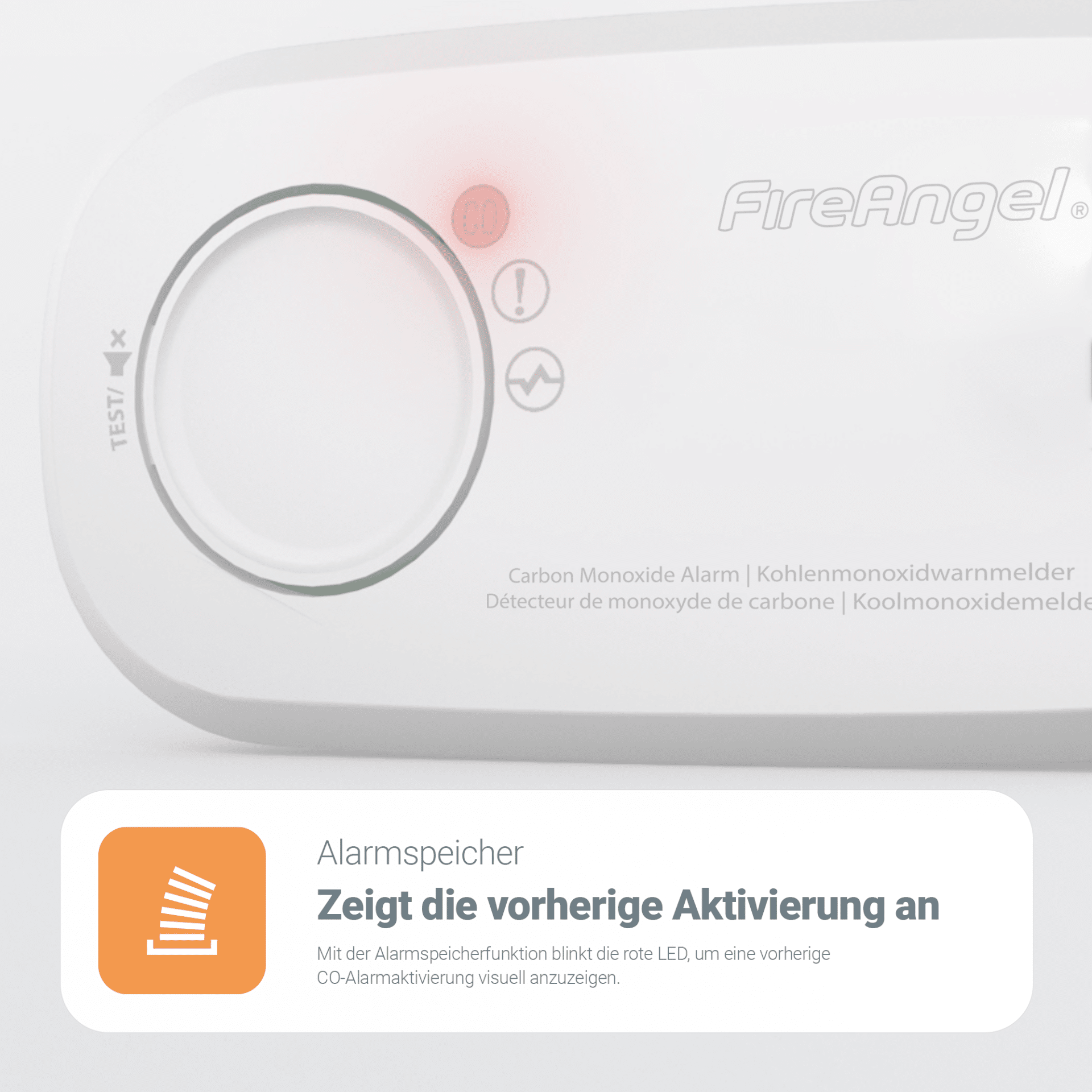 Der FireAngel Kohlenmonoxid Melder FA-3313-EUX10 mit wechselbaren 1,5 V AA Batterien detektiert und erkennt bereits sehr geringe Mengen vom Kohlenmonoxid in der Umgebungsluft. LED-Anzeigen für Alarm / Störung und Betrieb. Kohlenmonoxid ist ein gefährliches Atemgift und entsteht bei der unvollständigen Verbrennung von fossilen Energieträgern wie Öl, Gas, Holz, Kohle Pallets etc. Der CO-Melder warnt frühzeitig vor einer CO-Vergiftung und löst einen lautstarken akustischen und optischen Alarm aus. Die Ansprechschwellen für CO-Melder sind in der EN-Norm 50291 definiert und vorgeschrieben.