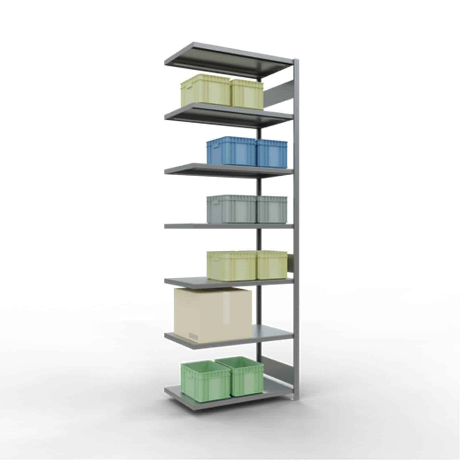 Flexible Stecksystem-Fachbodenregale für einseitige Bestückung und Entnahme der Lagerware
