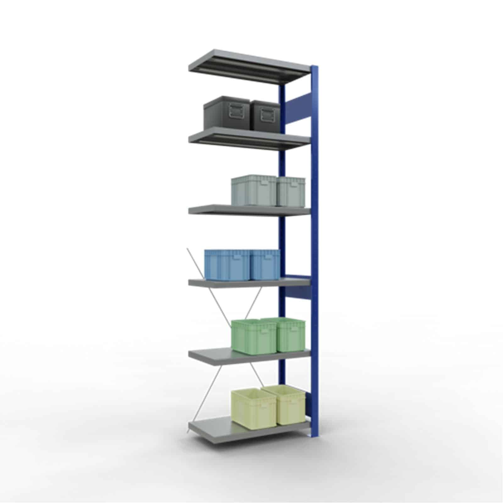 Stecksystem Anbauregal – 2500x 750×400 mm, Typ 250 kg RAL 5010 enzianblau/ verzinkt; einseitig