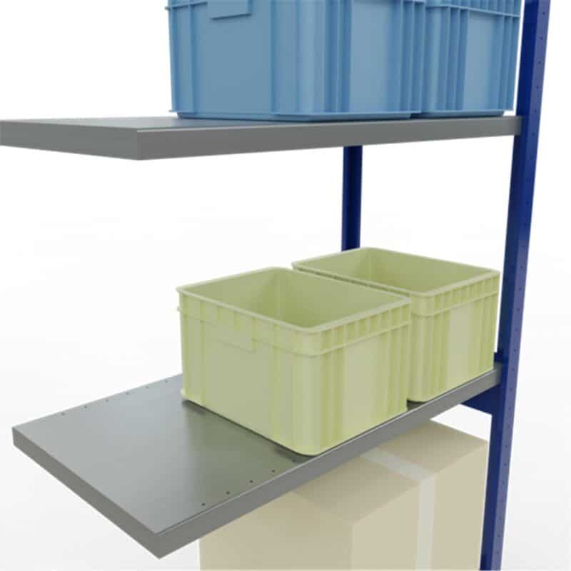 Flexible Stecksystem-Fachbodenregale für einseitige Bestückung und Entnahme der Lagerware