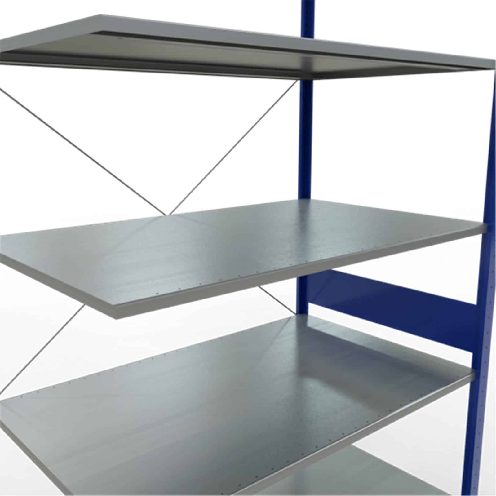 Stecksystem Anbauregal – 3000x1300x 800 mm, Typ 150 kg RAL 5010 enzianblau/ verzinkt; einseitig